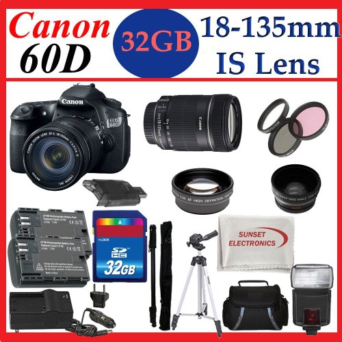 Cheap Price Now! Canon EOS 60D SLR Digital Camera + Canon EF-S 18-135mm f/3.5-5.6 IS Lens + Best Value 32GB Lens Accessory Package !!!